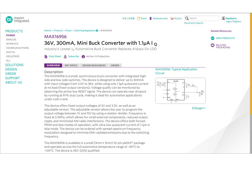 Maxim Integrated designs, manufactures and sells highly integrated, semiconductor-based solutions that can be found in today’s automobiles, consumer electronics, industrial and medical devices. Maxim not only specializes in creating innovative technology solutions, but also strives to deeply understand design engineers’ needs and help the companies they work for deliver products to market faster. One previous challenge in assisting customers in accelerating time-to-market was enabling product design engineers to quickly find the right Maxim products for their needs.