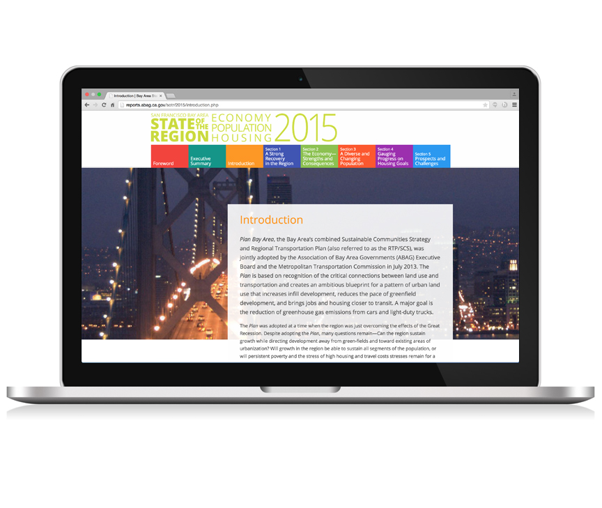 We collaborated closely with ABAG and Gore Creative to develop a cohesive theme shared by the printed report and the microsite under a very tight timeline.